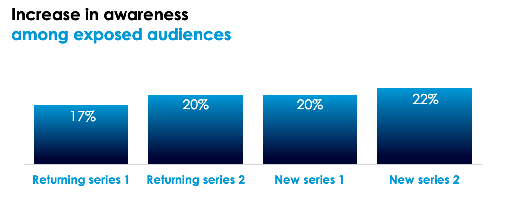 The campaign delivered measurable awareness gains across both returning and new series, with two titles in each category: